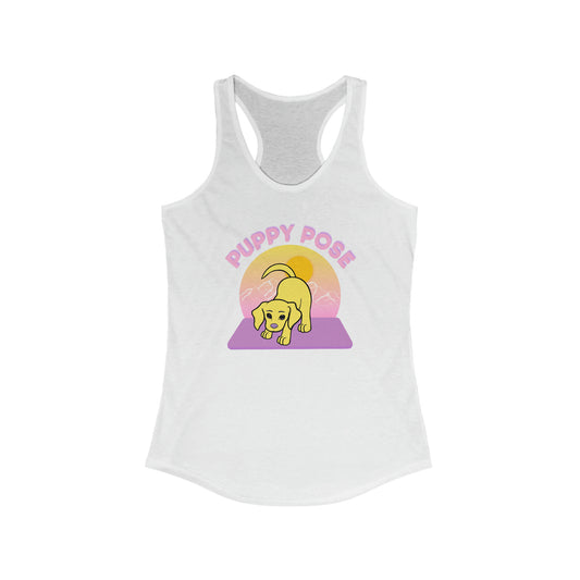 Puppy Pose with Yogi the Rescue Puppy Yoga Mascot Mountain Seen Women’s Tank Top