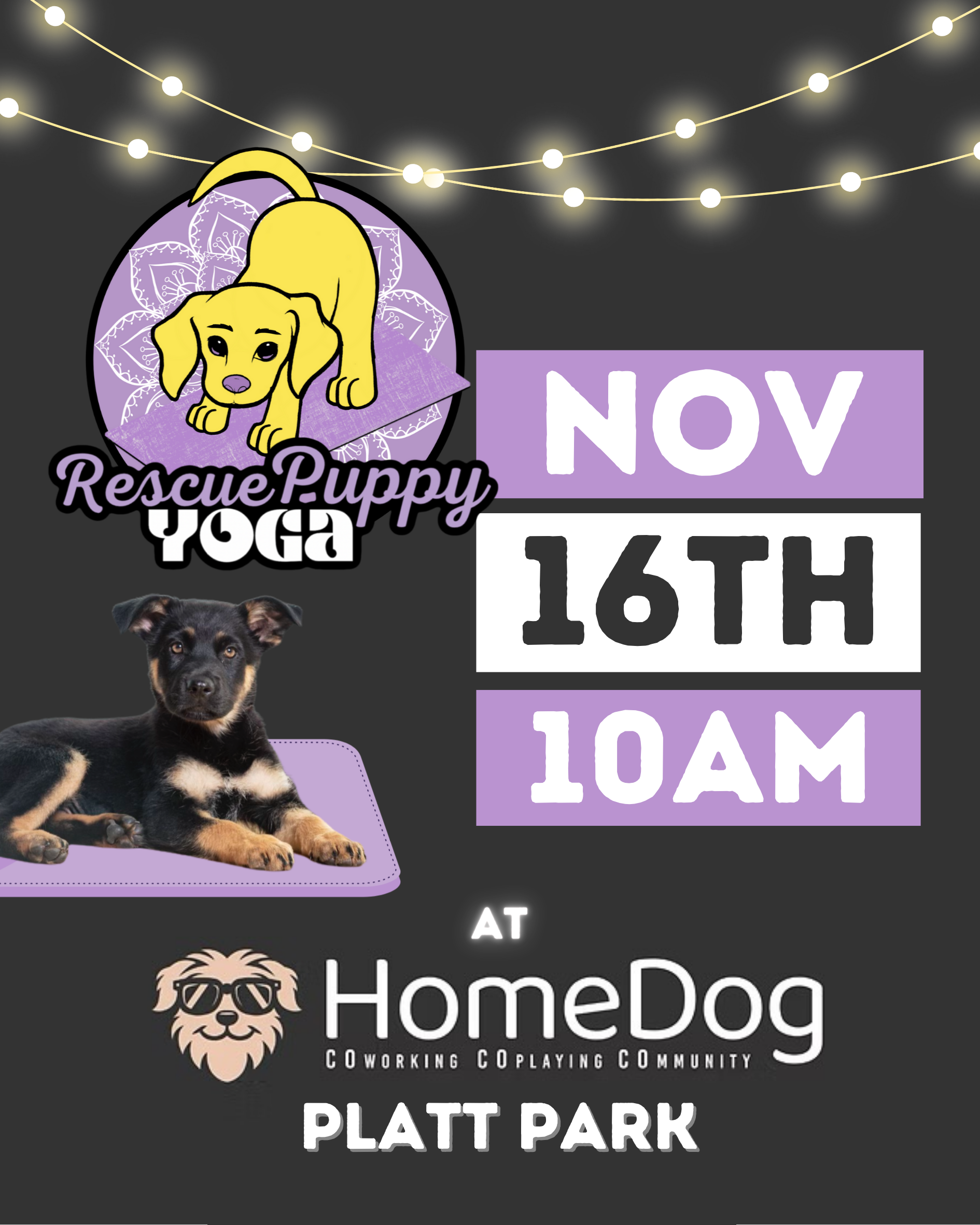 💜Rescue Puppy Yoga finds fosters, funds and forever homes for animals in need. We’re so excited to be bringing puppy poses and down dog a whole new meaning!