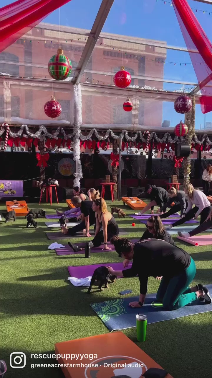 Enjoy the dazzling decorations at ViewHouse this Holiday Season with Rescue Puppy Yoga!